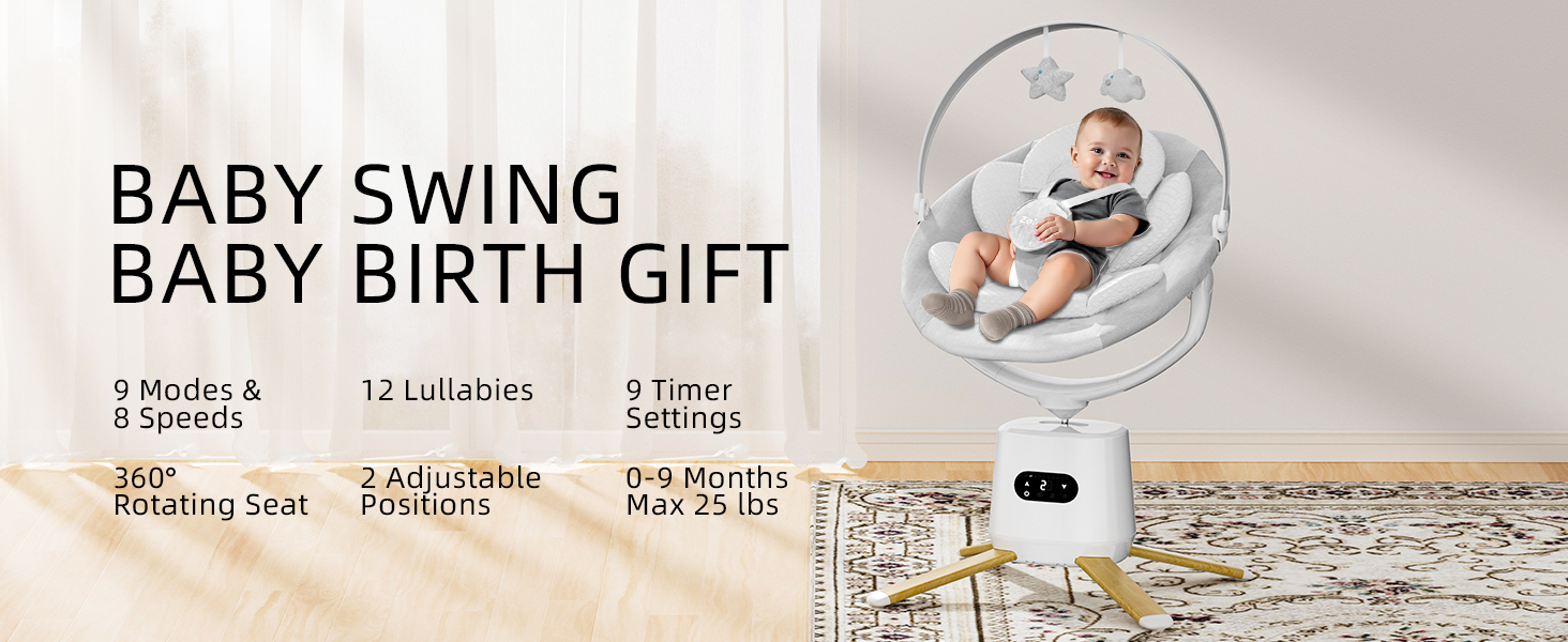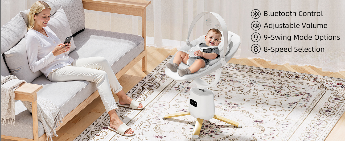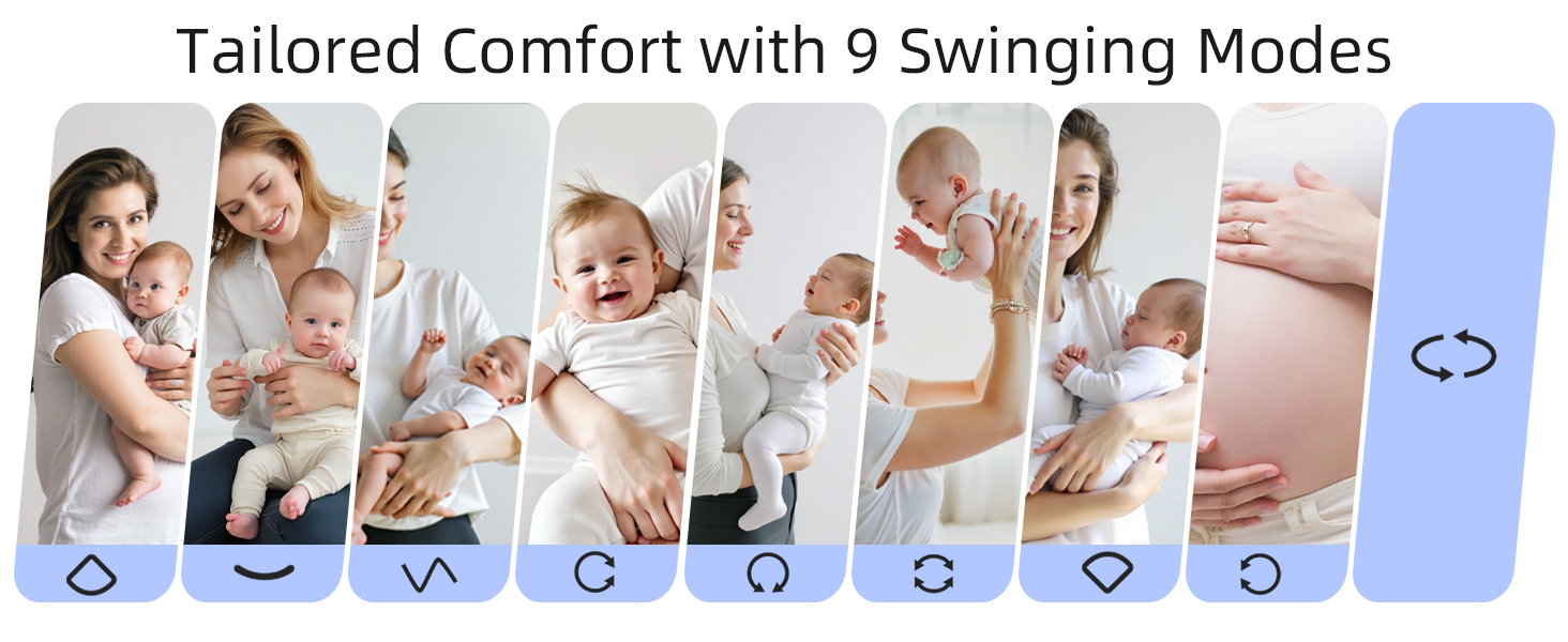 - 9 swing modes and 8 speeds, soothing motions comfort baby like mom does