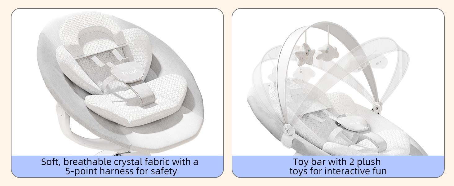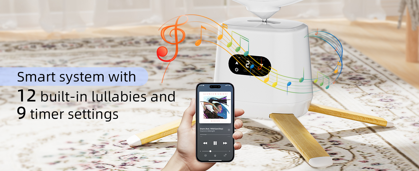 - Built-in 6 lullabies, or you can play baby's favorite songs via Bluetooth