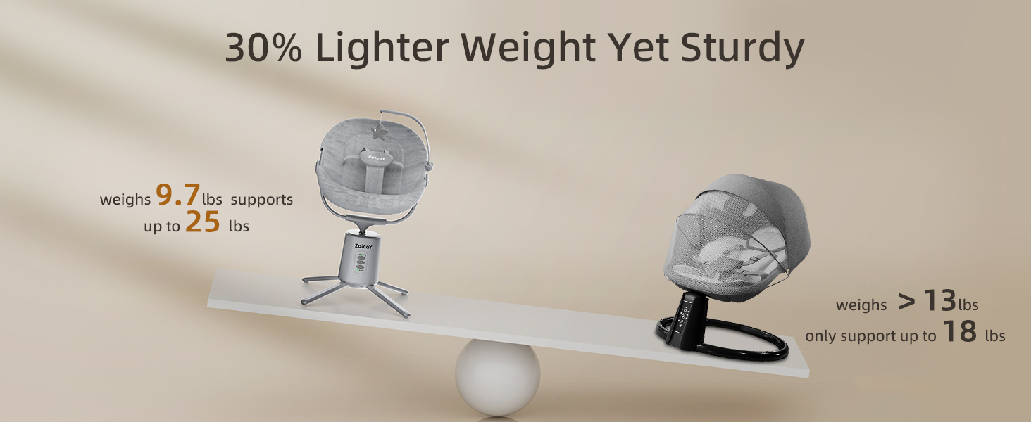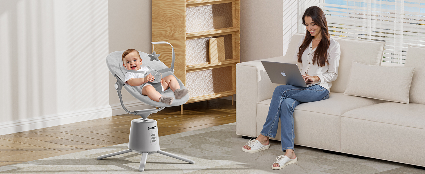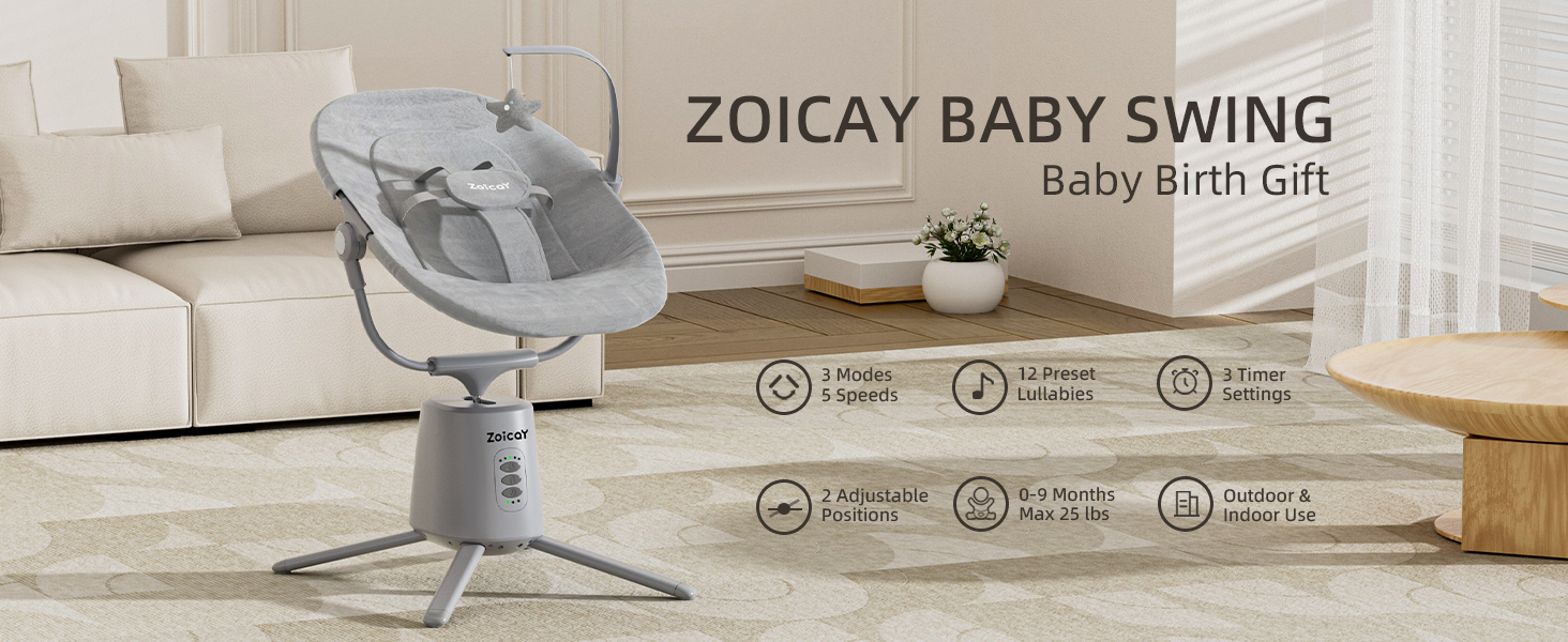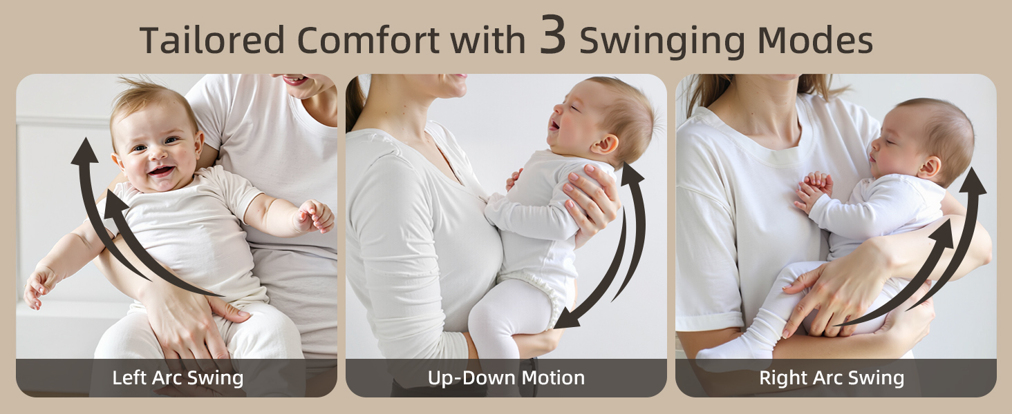 - MOST COMMONLY USED 3 MODES - The Zoicay baby swing features three soothing motions: Left Arc Swing, Right Arc Swing and Gentle Up-Down Motion, designed to mimic a moms' embrace and the patented motor ensures swing smooth and steadily.