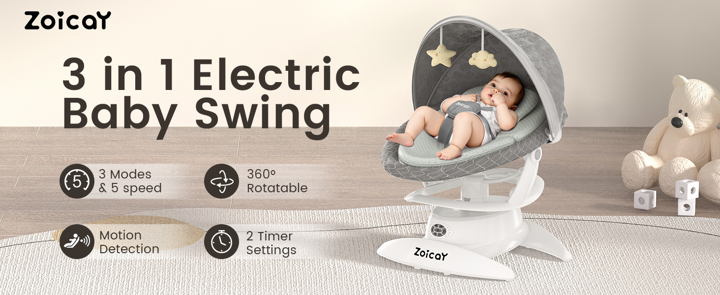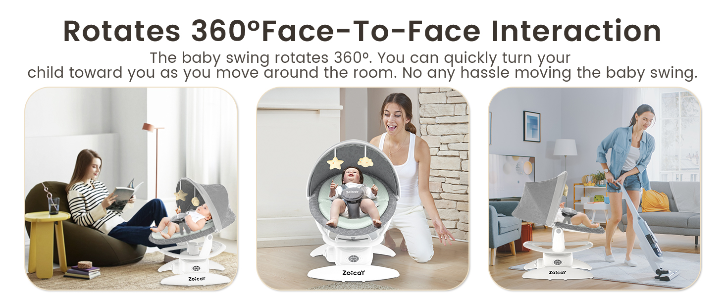 - ADVANCED SWING MODE -- When the motion sensing function is turned on, the baby swings for infants will detect and automatically start to comfort the baby when they move around. Electric baby chair also offer three most commonly used swing modes for soothing babies, as well as five different speed settings for swing speed